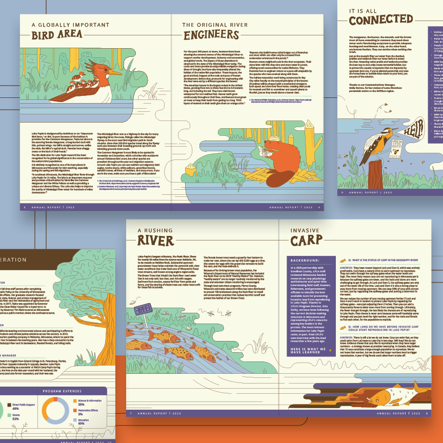 Each year has had a unique look & feel to communicate the issues Lake Pepin faces and the work that’s being done to help restore it.